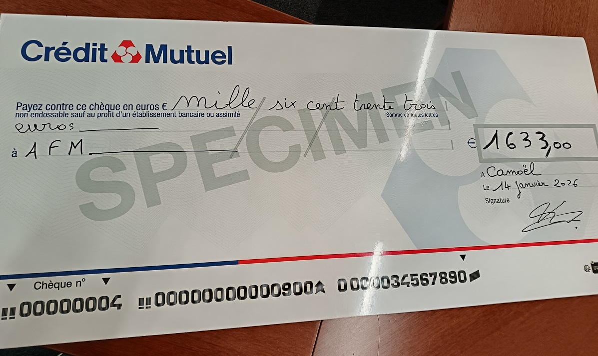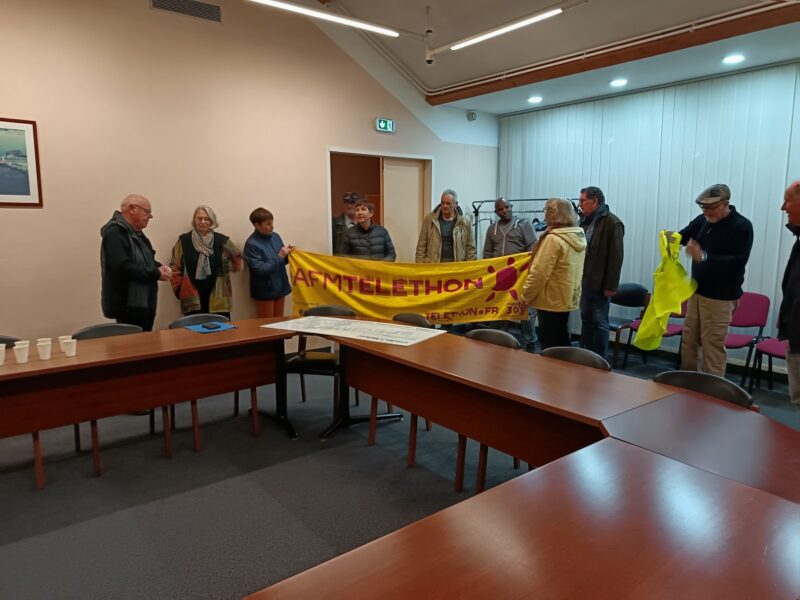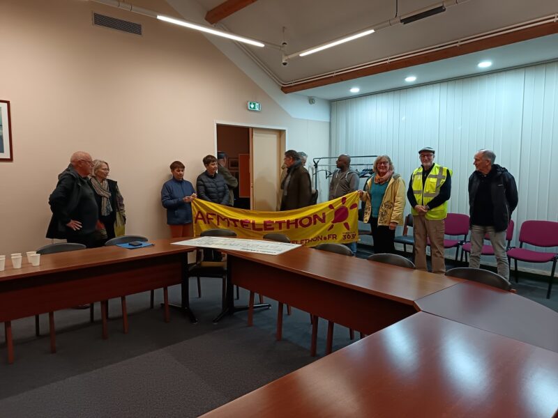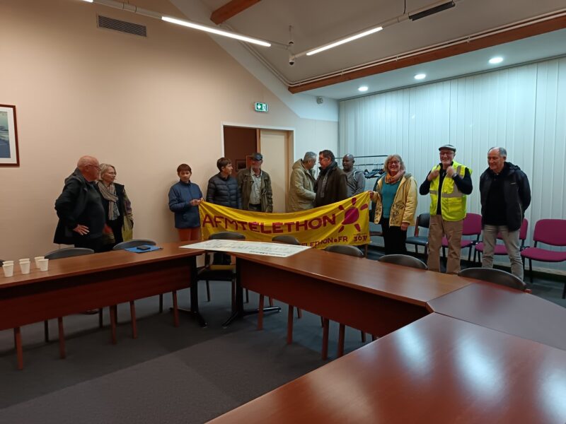 Le 12 décembre 2024 : Remise d’un chèque de 2644,80 euros à Monsieur Alain Morin représentant local de l’AMF Téléthon par les représentants des communes et associations d’Assérac, Camoël, Férel et Herbignac ayant organisé le téléthon local le 01 décembre 2024.