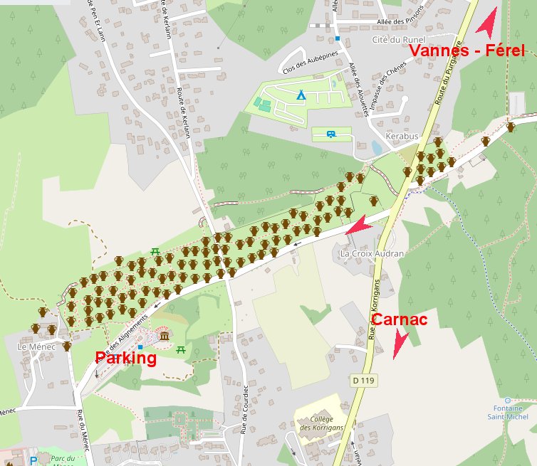 Sur place à Carnac, rdv au parking de la maison des mégalithes rue du Ménec.